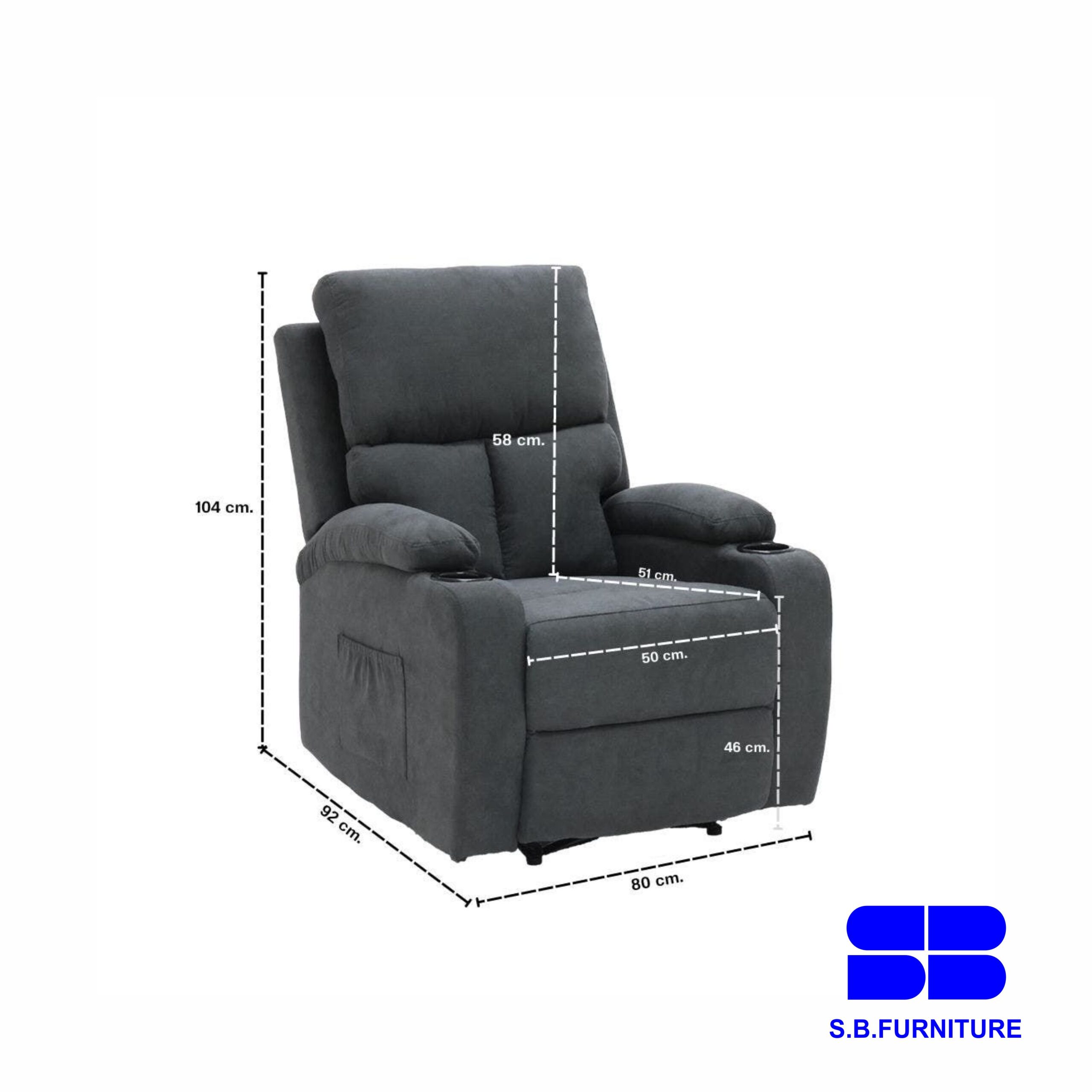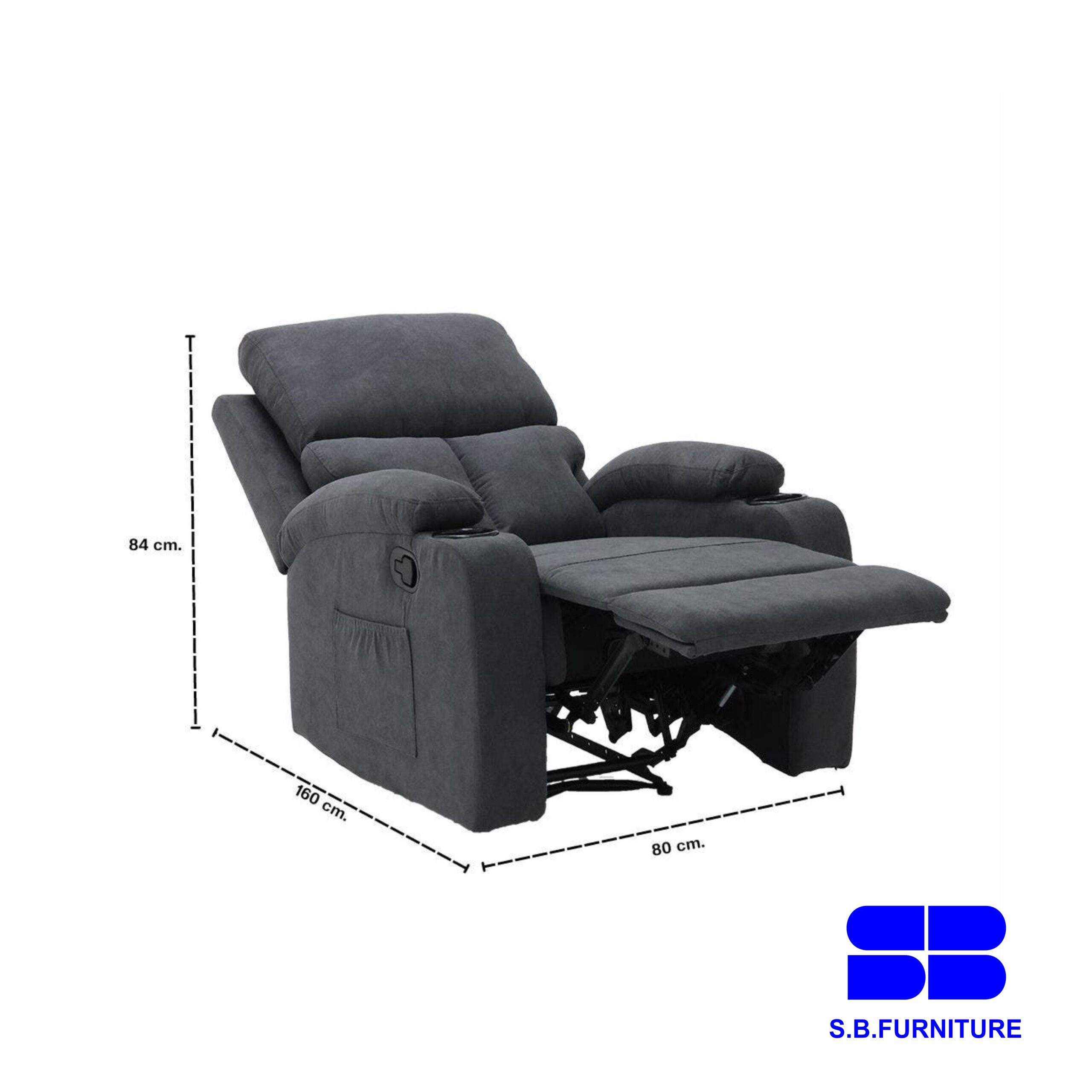 - Includes cup holders on both sides of the armrest.