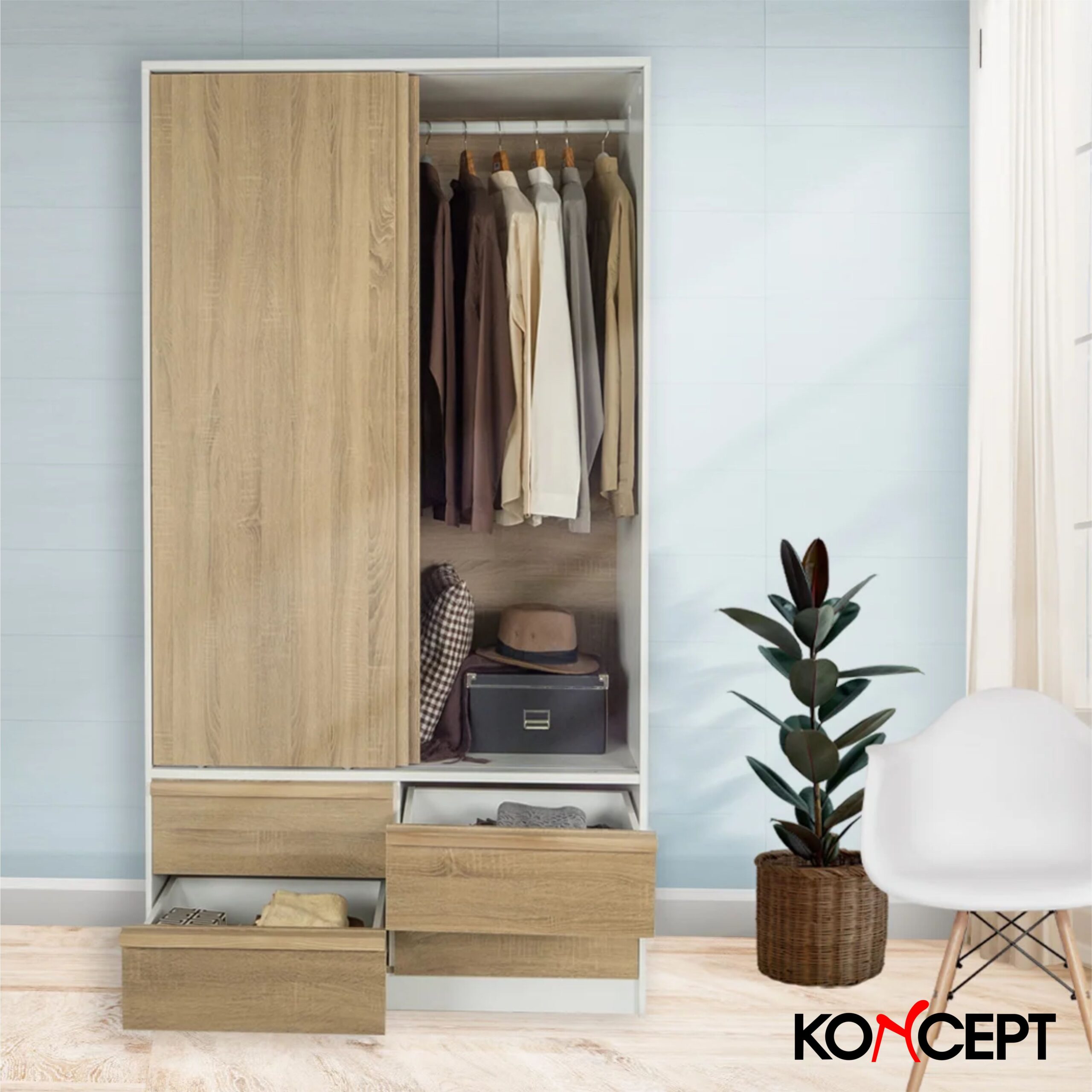 - 4 drawers at the bottom of the wardrobe that can keep your things more organized.